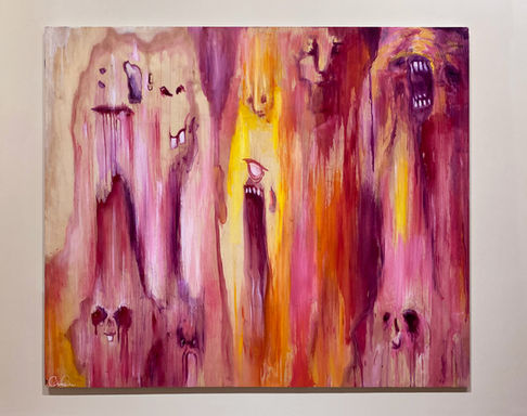Her Artwork consists of creepy, surreal creatures painted in bright, whimsical colors that