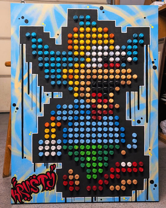 From pixelated icons to reimagined portraits of animals and heroes, Diego transforms the familiar into something surreal and electrifying. Each piece carries the essence of graffiti culture—spray drips, tags, and contrasts that reflect both chaos and beauty.